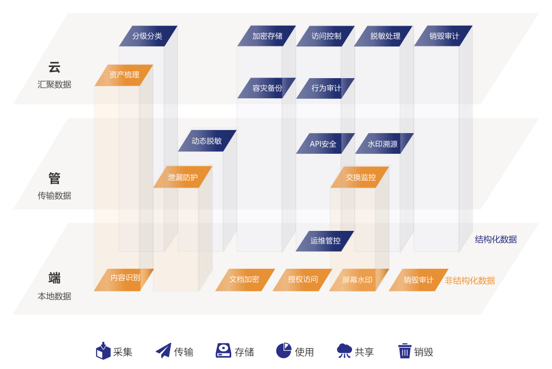 数据从其产生、存储、使用、交换、传输直至其被销毁的全生命周期之中,每时每刻都存在各种各样的安全风险,包括可用性、完整性以及机密性等各类风险。其中尤其以存储、使用、交换和传输这四大数据流转环节中面临到的风险和威胁最为严重。
