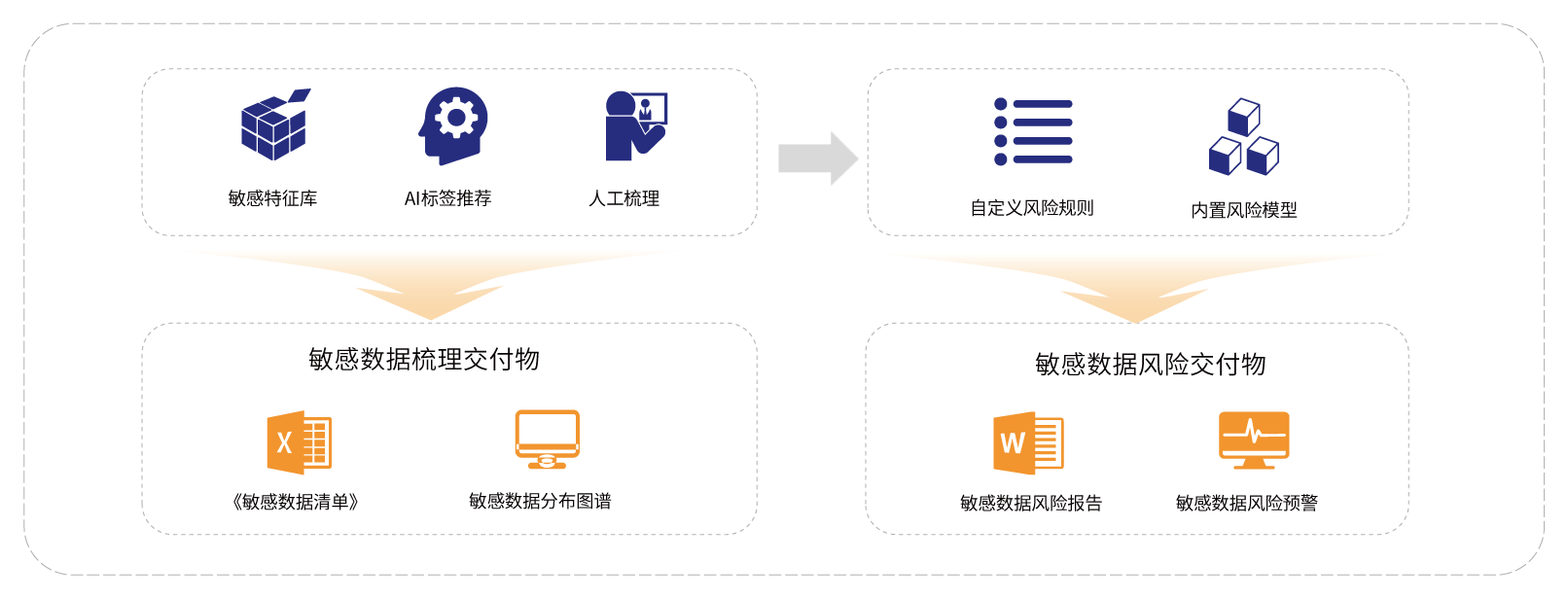 闪捷数据资产梳理服务,是对客户数据资产和业务进行梳理和盘点,从数据的敏感程度和重要程度对数据进行分级分类,为数据安全治理各项工作开展提供参考依据;主要包含数据资产盘点服务、敏感数据识别服务、数据安全分级分类服务和数据安全策略规划服务。